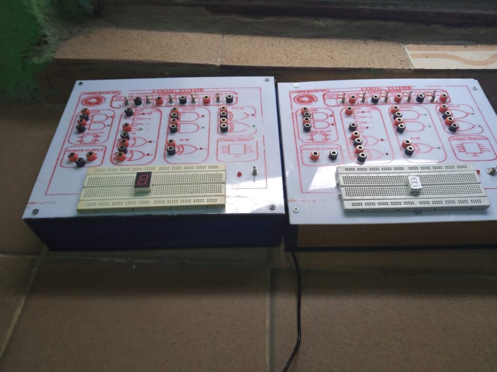The final design integrates all phases around a central breadboard where users connect the ICs and jumper wires.