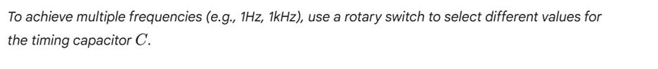 A clock signal is essential for testing sequential logic. The NE555 Timer IC is the standard choice for generating a stable square wave.